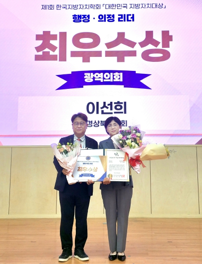 이선희 경상북도의회 기획경제위원장(청도, 국민의힘)이 8월 29일 한국지방자치학회 주관으로 전북대학교에서 열린 '제1회 대한민국 지방자치대상'에서 행정·의정 리더부문 최우수상을 수상하는 영예를 안았다.