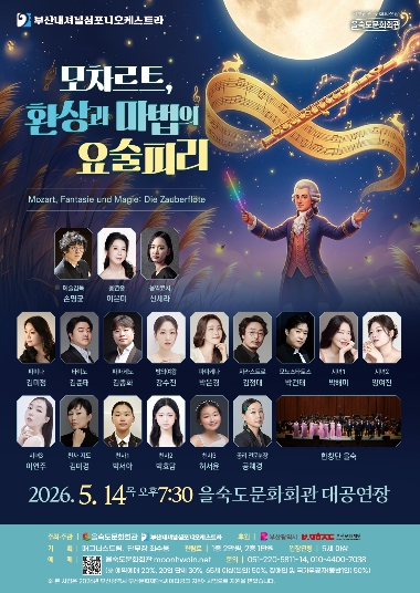 이번 공연은 모차르트의 대표작 ‘마술피리’를 재해석한 무대로 고전 오페라의 아름다움과 음악적 깊이를 쉽고 흥미롭게 전달한다. 친숙한 해설을 더해 다양한 연령층이 함께 즐길 수 있도록 구성했으며, 오페라를 처음 접하는 관객도 부담 없이 관람할 수 있다. 또한 지휘봉을 든 모차르트와 함께 신비로운 음악 여행을 떠나는 듯한 연출로, 음악의 힘을 통해 온 가족이 즐길 수 있는 클래식 판타지 공연이 펼쳐진다.