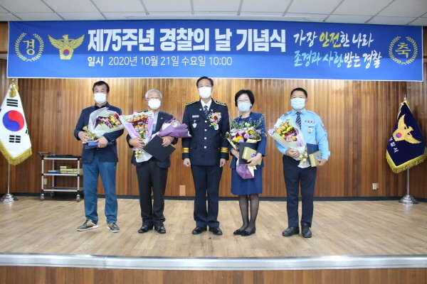 제75주년 경찰의 날 기념식이 21일 오전 10시 고흥경찰서 대회의실에서 김진천 서장과 유홍철 경우회장, 김명철 경찰발전협의회장, 수상자, 경찰관 등 40여명이 참석한 가운데 개최됐다.