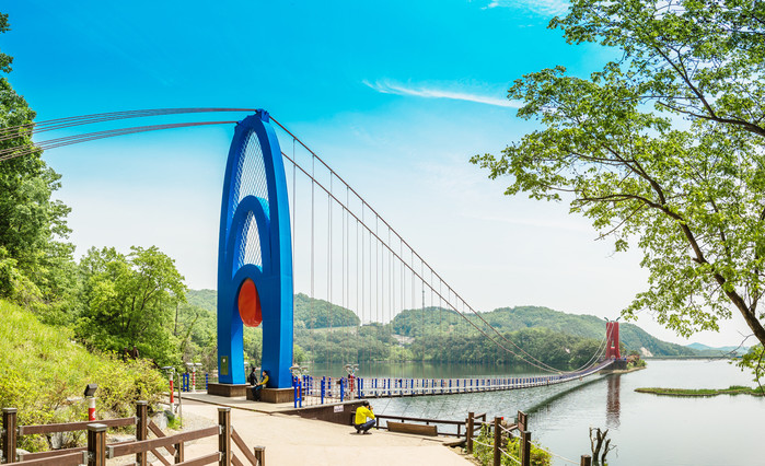 | ▲ 칠갑산 천장호 출렁다리 전경. |