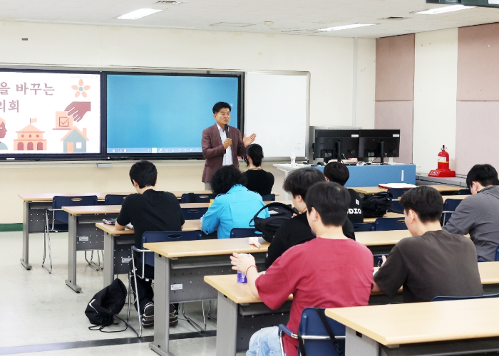 대전광역시 유성구의회 김동수 의장이 4일, ‘내 삶을 바꾸는 지방의회’란 주제로 대학생 대상 특별 강연을 진행했다.