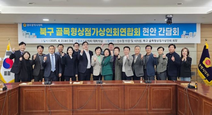 신수정 의장은 4월 2일 광주광역시의회 대회의실에서 “북구 골목형상점가 상인회연합회 현안간담회”를 개최하고, 상인회 회장들과 함께 골목상권 활성화 방안을 논의했다.