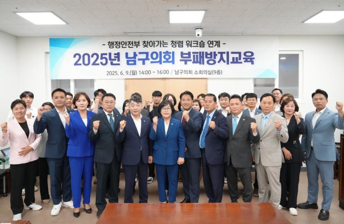 남구의회는 9일 의회 소회의실에서 전체 의원 및 의회사무국 직원을 대상으로 ‘2025년 부패방지 교육’을 실시했다.