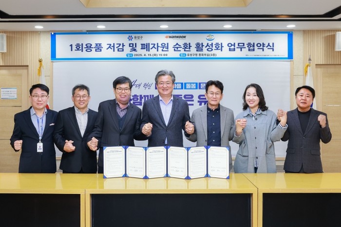 대전 유성구는 15일 한국타이어앤테크놀로지㈜의 중앙연구소 한국테크노돔, 대전녹색환경지원센터와 1회용품 저감 및 폐자원 순환 활성화를 위한 업무협약을 체결했다.