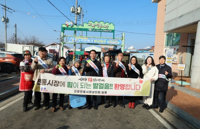 고창군이 12일 고창전통시장에서 ‘설 명절 맞이 전통시장 장보기 행사’를 개최했다.