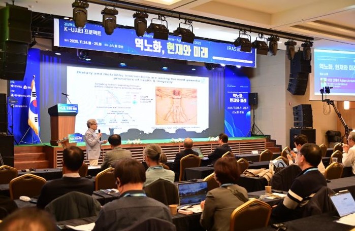 포럼은 25일에도 이어지며, ‘AI for Reverse-Aging’을 주제로 ▲AI 기반 역노화 천연물 분석 ▲디지털 헬스케어 ▲세포 역노화 기술 ▲역노화 산업단지 조성 전략 등 학술·산업·정책을 아우르는 심층 세션이 진행된다.