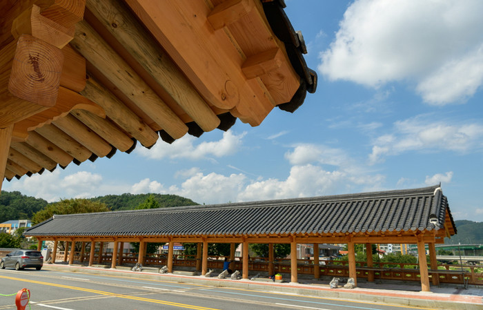 | ▲ 왕릉교 인도에 설치된 한식 회랑이 이달 준공을 앞두고 있다. |
