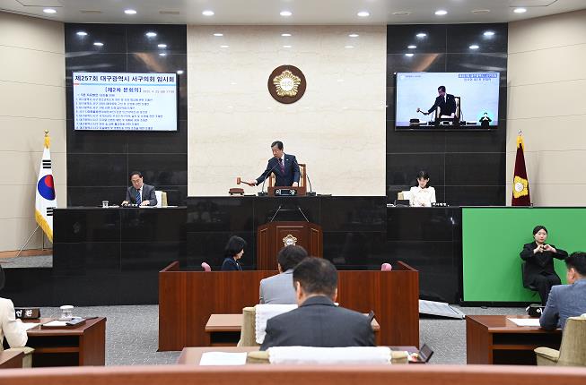 대구 서구의회는 25일 제257회 임시회 제2차 본회의를 끝으로 2025년 제1회 추가경정예산안 등 의원발의 5건의 안건을 처리하고 9일간의 의정활동을 마무리했다.