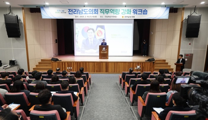 전라남도의회는 19일 전남여성가족재단 공연장에서 도의회와시·군의회 직원을 대상으로 직무역량 강화 워크숍을 개최했다.