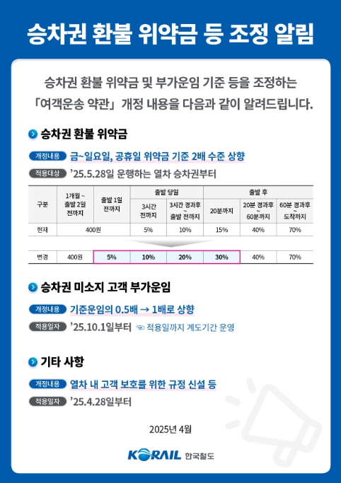 이번에 변경된 위약금 기준은 한 달간 이용객 홍보를 거쳐 5월 28일 출발하는 열차부터 적용된다.
