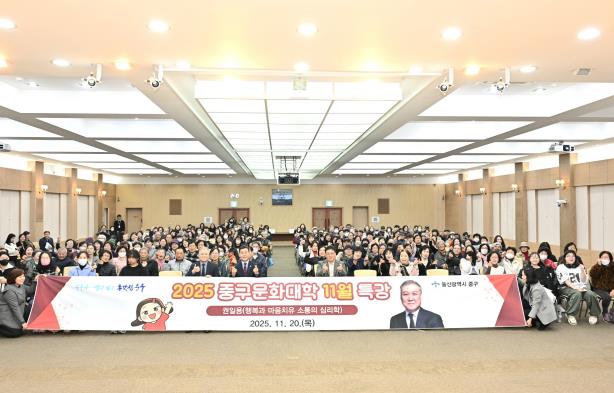 울산 중구가 11월 20일 오후 1시 30분 중구청 대회의실에서 2025년 중구문화대학 11월 주민특강을 개최했다.