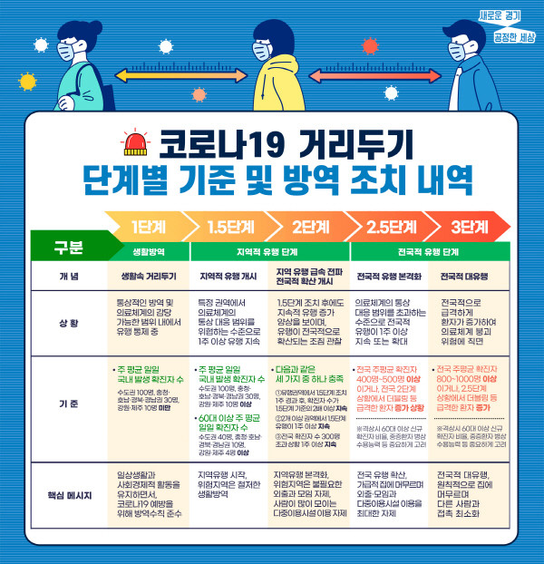 | ▲ 거리두기 단계별 기준 및 방역조치 |