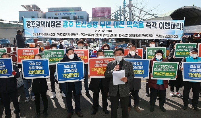 이날 현장을 지켜보던 천세두(63세, 아랫장 번영회장)씨는 “광주·전남은 상생하고 함께 성장해야 할 한뿌리 공동체이다. 이용섭 시장도 전남 함평에서 낳고 자란 정치인이다. 광주시는 전남과 더불어 함께 하는 모습을 보여줘야 한다”고 힘주어 말했다.