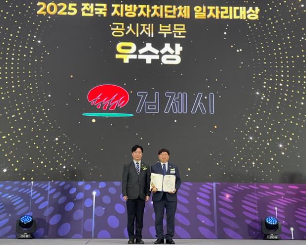 김제시는 30일 청주 오스코에서 열린 '2025년 전국 지방자치단체 일자리대상'시상식에서 공시제 부문 우수상을 수상하며 고용노동부 장관 표창과 함께 인센티브 사업비 5백만원을 확보했다고 밝혔다.