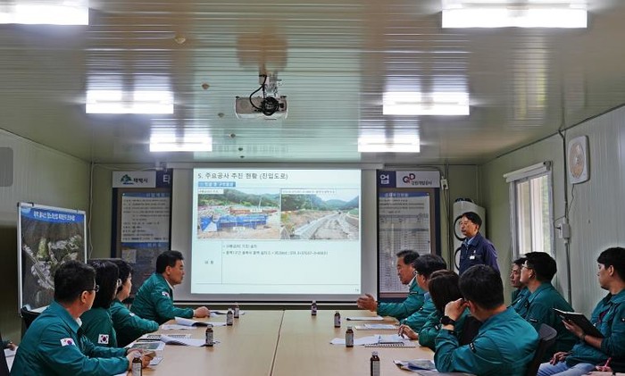 금일 현장점검은 △웰니스 항노화산업 특화단지 조성사업(공공사업과), △백두대간 문화철도역 연계협력사업(공공사업과), △장성분구 하수관로 정비사업(상하수도사업소) 등 총 3개 사업장에 대하여 실시했다.