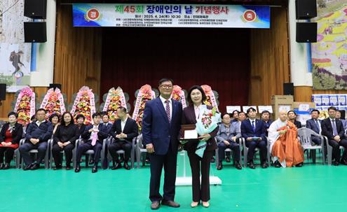 강원특별자치도의회 농림수산위원회 엄윤순 위원장(인제)이 24일 제45회 장애인의 날을 맞이하여, 인제군 지체장애인협회로부터 감사패를 수상했다.