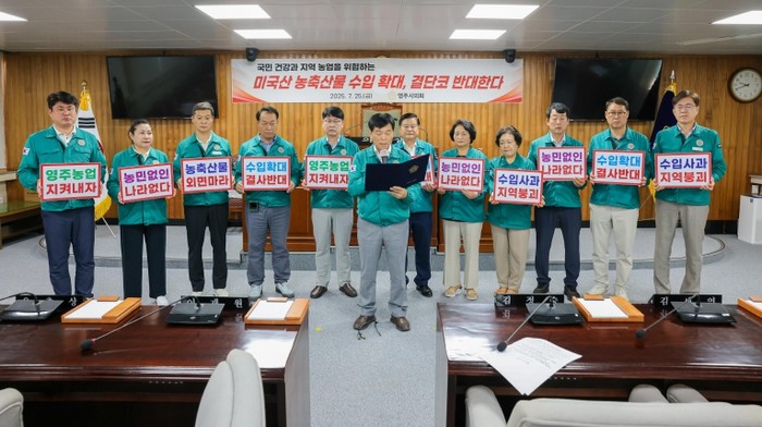이에 따라 영주시의회는 정부에 ▲ 미국산 농축산물 수입 확대 검토를 즉각 중단하고 협상 안건에서 전면 배제할 것 ▲ 국민 건강과 농업의 공익적 가치를 최우선으로 고려해 통상 협상을 추진할 것 ▲ 통상 정책 수립 과정에서 농업계와 지방정부의 의견을 적극 반영하고 공론화 체계를 마련할 것 등을 강력히 촉구했다.