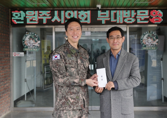 원주시의회는 설날을 맞이하여 금일(1월 22일) 관내 군부대를 방문해 장병들의 헌신에 감사의 뜻을 전하고 격려금을 전달했다.