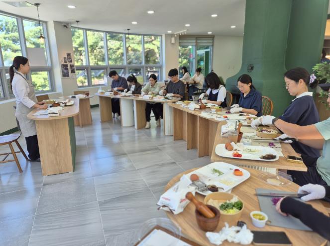 ▲ 임신부부 10쌍을 대상으로 치유음식 체험이 진행되고 있다. |