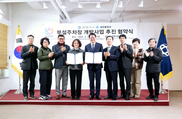 안양시가 7일 15시 접견실에서 도심 주택가 등의 주차난 해소를 위해 귀인중학교와 ‘부설주차장 개방사업’ 협약을 체결했다.