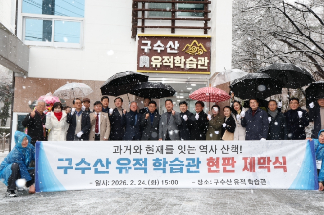 대구 북구청은 2월 24일, 구수산 공원에서 지역 의원, 발굴 관계자 및 주민들이 참석한 가운데 ‘구수산 유적 학습관’ 현판 제막식을 가졌다.