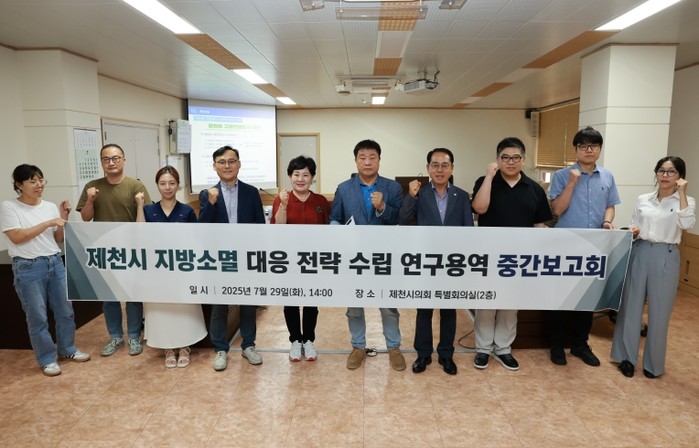 제천시의회 의원연구단체 ‘살기좋은 도시 제천의 매력’(대표 이정임 의원, 참여의원 박해윤·이재신의원)은 29일 '제천시 지방소멸 대응 전략 수립 연구용역' 중간보고회를 열어 그간의 연구 내용을 공유하고 향후 정책 방향을 논의했다.