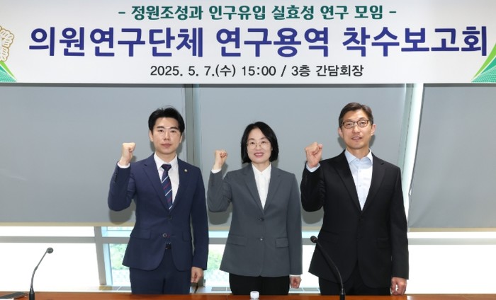 '기업하기 좋은 환경 조성 연구 모임'과 '정원 조성과 인구 유입 실효성 연구 모임' 등 2개의 의원연구단체가 운영되며, 이날 착수보고회에는 연구단체 소속 의원들과 연구용역 수행기관 관계자들이 참석해 연구 방향, 일정, 주요 과제 등에 대해 논의했다.