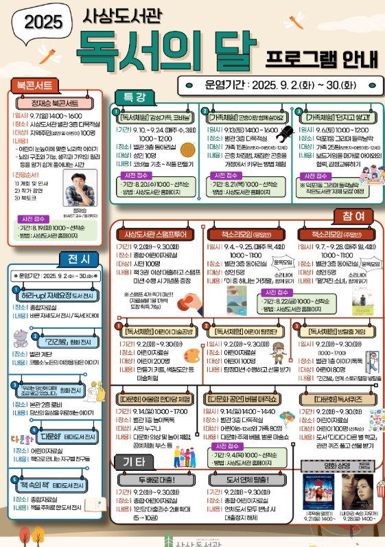 ▲ 사상구, 9월‘독서의 달’맞아 다채로운 독서문화 행사 개최 |