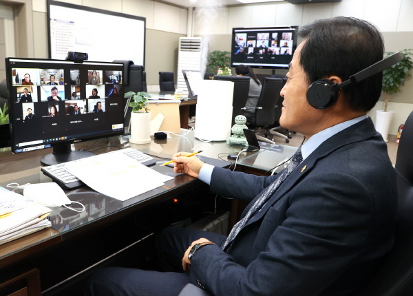 장현국 의장은 23일 오후 의장 집무실에서 ‘더불어민주당 참좋은지방정부위원회 온택트(Ontact) 정책정담회’에 참여해 지방자치법 개정안의 국회통과 후속조치에 대해 심도 있는 논의를 진행했다.