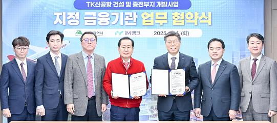 대구광역시는 1월 14일 오후 2시 대구시청 산격청사에서 iM뱅크와 ‘TK신공항 건설 및 종전부지 개발사업 지정 금융기관’ 업무협약을 체결했다.