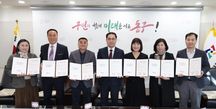 이날 협약식에는 박희조 동구청장을 비롯해 판암동 삼정그린코아포레스트1단지아파트, 용운동 한화꿈에그린아파트, 신인동 어진마을아파트 입주자대표회장과 어린이집 운영자 등 6명이 참석했다.