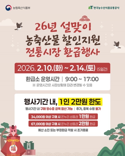■ 2026년 설맞이 농축산물 할인지원 전통시장 환급행사