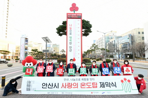 안산시(시장 윤화섭)는 8일 시청 앞 교통섬에 사랑의 온도탑을 설치하고 ‘희망2021 나눔캠페인 사랑의 온도탑 제막식’을 개최했다.