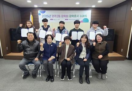 부산 중구 영주2동 장학회는 지난 7일 2025년 장학생으로 선정된 대학생 5명에게 장학증서와 장학금 500만원(1인당 100만원)을 전달했다.
