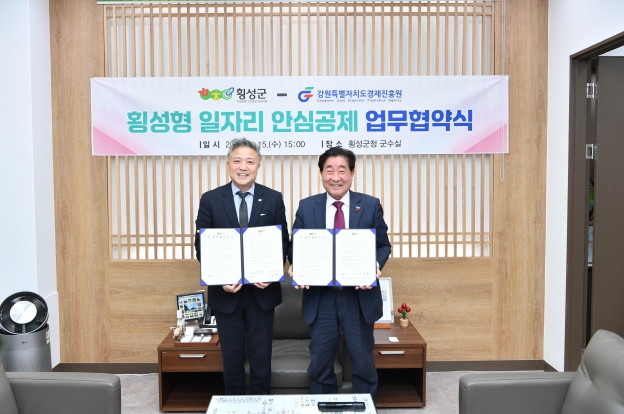 횡성군은 15일 오후 3시 횡성군청에서 강원특별자치도 경제진흥원과 ‘횡성형 일자리 안심공제’업무 협약을 맺고 시범사업을 추진한다.