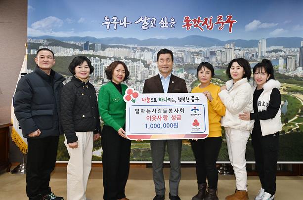 | ▲ 중구 일하는 사람들 봉사회, 이웃돕기 후원금 100만 원 전달 |