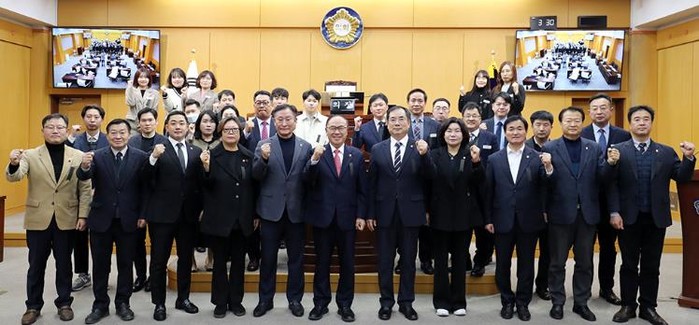 조동식 의장을 비롯한 의원들과 의회사무국 직원 등 30여 명이 참석한 가운데 열린 종무식은 의정발전 유공자 시상, 송년사, 의원회고사, 기념촬영 순으로 진행됐다.