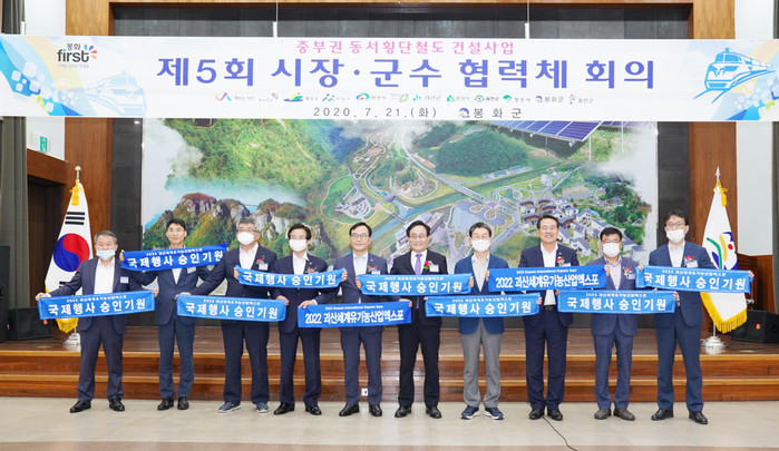 중부권 동서횡단 철도건설사업을 위한 제5회 시장·군수 협력체 회의가 21일 경상북도 봉화군청 대회의실에서 개최됐다.