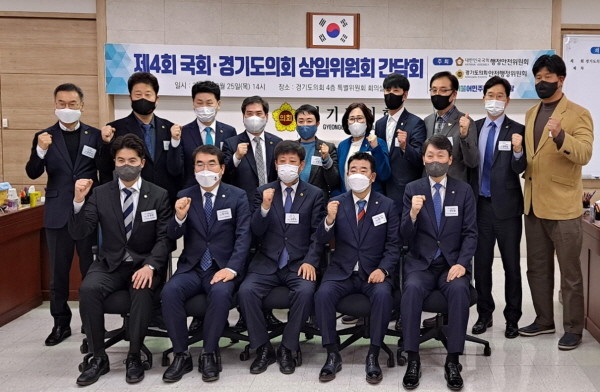 [프레스뉴스] 김대일 기자= 더불어민주당 소속 경기도의회 안정행정위원회(위원장 김판수) 의원들이 25일(목) 도의회 4층 특별위원회 회의실에서 국회 행정안정위원회 경기지역 의원들과 상임위 관련 주요 현안에 대해 논의하는 시간을 가졌다.