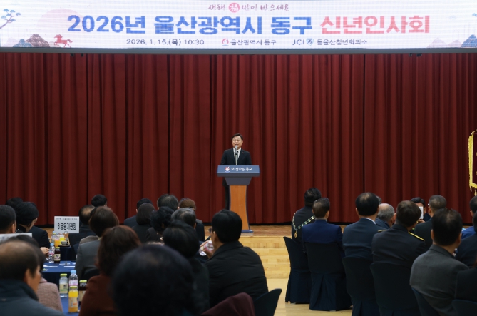 울산 동구는 1월 15일 오전 10시 30분 동구청 2층 대강당에서 2026년 울산광역시 동구 신년 인사회를 개최했다.