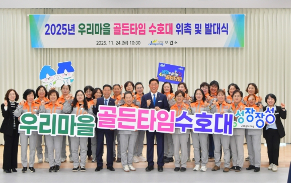 장성군이 24일 가족행복센터에서 ‘골든타임 수호대’ 위촉식 및 발대식을 가졌다. 김한종 장성군수, 심민섭 장성군의회 의장 등이 참석해 축하와 감사 인사를 전했다.