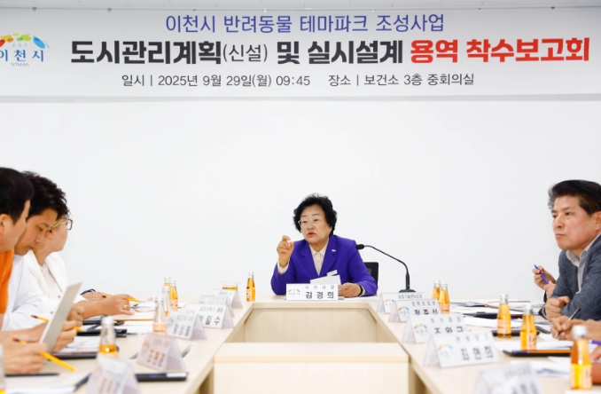 이천시가 반려동물, 반려인과 비반려인이 함께 어울릴 수 있는 복합문화공간인 ‘반려동물 테마파크’ 조성을 본격 추진한다고 밝혔다. 시는 최근 율면 월포리 일원에 대한 설계 용역에 착수했으며, 9월 29일 착수보고회를 통하여 사업의 방향과 세부 내용을 발표하고 각계각층의 의견을 수렴했다.