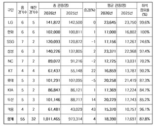 2026 신한 SOL KBO 리그, 역대 최소 경기 100만 관중 달성