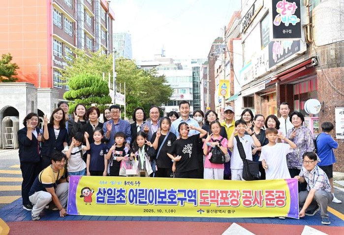 울산 중구가 삼일초등학교 어린이보호구역 도막 포장 공사를 마무리했다.