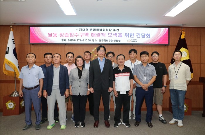 울산 남구의회 김대영 의원(국민의힘, 수암·달동)이 27일 3층 의회 상황실에서 이양임 부의장, 지역 주민과 관계 공무원이 참석한 가운데 달동 상습 침수 문제 해결을 위한 간담회를 개최했다.