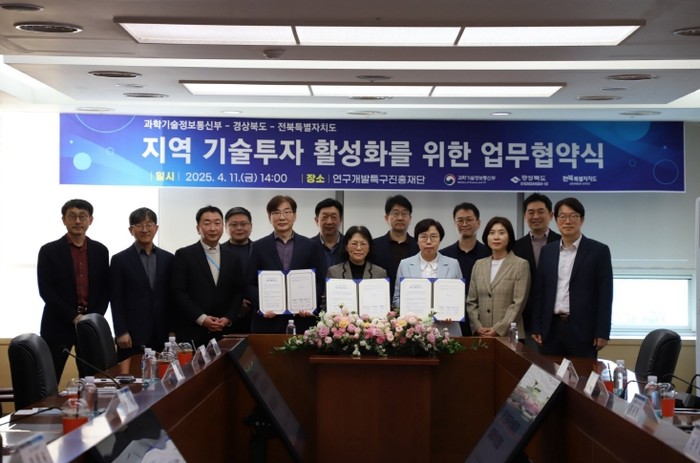 전북특별자치도는 과학기술정보통신부와 경상북도와 함께 11일 대전 연구개발특구진흥재단에서 ‘지역 기술투자 활성화를 위한 업무협약(MOU)’을 체결하고, 지역 기술기업에 대한 투자 활성화 방안을 모색하기 위한 간담회를 개최했다.