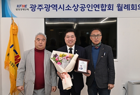 광주 서구의회 전승일 의장이 지난 19일 광주광역시 소상공인연합회(회장 송기영) 월례회의에서 목민감사패를 받았다.
