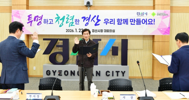 경산시는 23일 경산시청 대회의실에서 2026년 간부 공무원 반부패·청렴실천 결의대회를 개최했다.