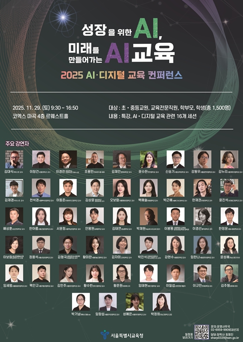 서울특별시교육청(교육감 정근식)은 AI 시대 학습자의 성장을 체계적으로 지원하고, 공교육이 나아가야 할 미래교육의 방향을 모색하기 위해 '2025 AI·디지털 교육 컨퍼런스'를 11월 29일 마곡 코엑스에서 개최한다.