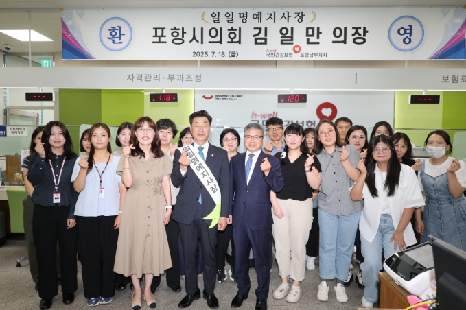 포항시의회 김일만 의장은 18일 오전 국민건강보험공단 포항남부지사 ‘일일 명예지사장’으로 위촉돼 공단 업무를 체험하고 시민들과 소통하는 시간을 가졌다.